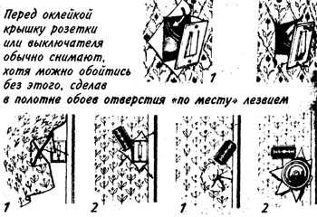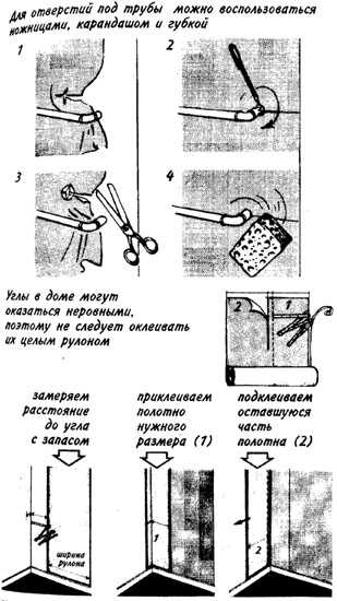 Сначала полотнище приклеивают к стене сверху, затем чистой щеткой или тряпкой его разглаживают от центра к краям, следя за тем, чтобы оно хорошо приклеилось.НаверхВторой работающий выравнивает вертикальный шов (внахлест или встык) и следит за совпадением узора. Старайтесь, чтобы не образовывались морщины и пузыри. Мелкие морщины разойдутся, когда обои подсохнут. Пузыри можно проткнуть иглой или прорезать лезвием.